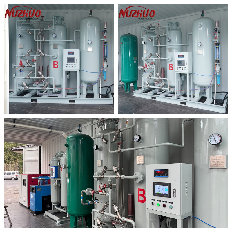 Nitrogen generation system with added purification equipment: usually refers to the two-step method. The first step is that the PSA main unit first produces nitrogen of a lower purity (such as 95%-99.5%). The second step is to conduct deep purification through additional purification equipment (such as catalytic deoxygenation + drying or membrane separation, etc.), ultimately producing ultra-high purity nitrogen (such as higher than 99.999%, while reducing the oxygen content to extremely low levels, such as <1ppm, and lowering the dew point to below -60℃).