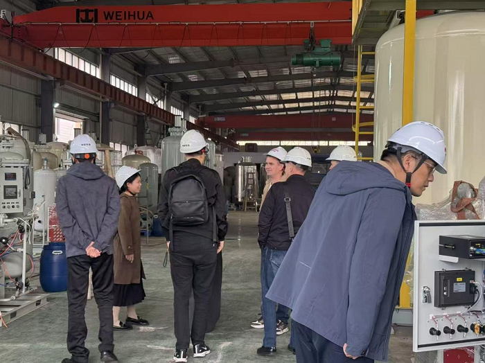 During the visit, accompanied by Nuzhuo Group executives, the Russian clients toured the group’s modern production and manufacturing center, state-of-the-art R&D laboratories, and project showroom. The clients highly praised Nuzhuo Group’s strong R&D capabilities, rigorous process flows, and advanced intelligent manufacturing level in the field of cryogenic technology. They showed particular interest in the core technical parameters, energy consumption indicators, and long-term operational stability of Nuzhuo’s air separation equipment, and engaged in professional and detailed discussions with Nuzhuo’s technical team.